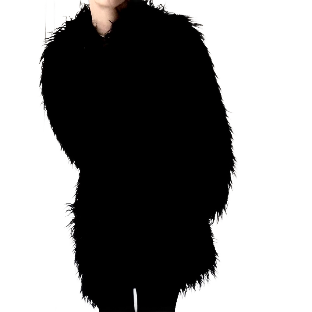 NOIR COAT - In Faux Fur lined with Cotton Knit (BLACK). Snuggle up in the softest faux fur lined in cotton. The Noir has all of the warmth of a Coat with the give and softness of a sweater. Fully lined with cotton. Front pockets and hook and eye closure.